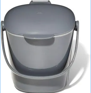 Ce composteur de la marque Oxo n'est pas du tout cher (20,99 € pour 2,8 litres) et a une capacité de 2,3/2,8/3/6,6 litres.
