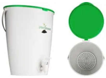 Il possède un système de compostage traditionnel. Ce composteur est aussi composé d’un bac gris extérieur (ou blanc), vert militaire intérieur et d’un couvercle. Petit, il peut se placer facilement dans votre cuisine et accueille vos restes compostables.